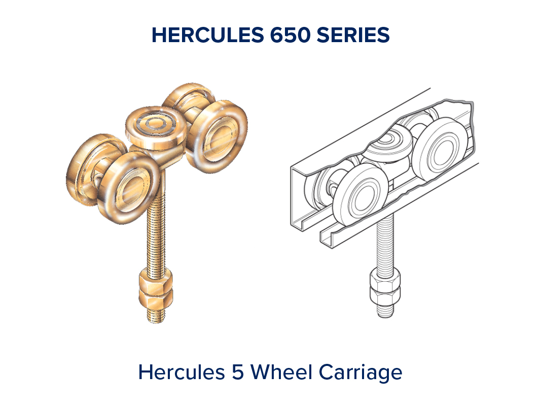 Hercules 650 Series is a sliding door track system recommended for doors up to 650kg and 6000mm height. Designed for heavy-duty sliding doors in industrial sheds, warehouses and large commercial buildings.