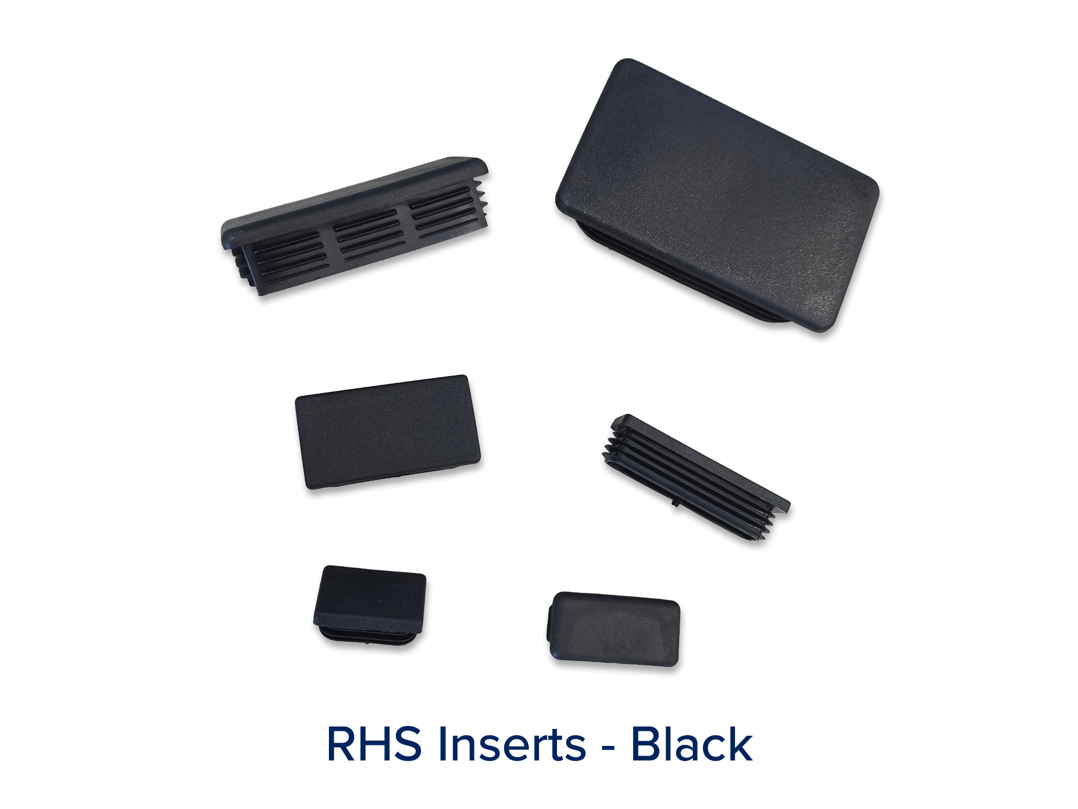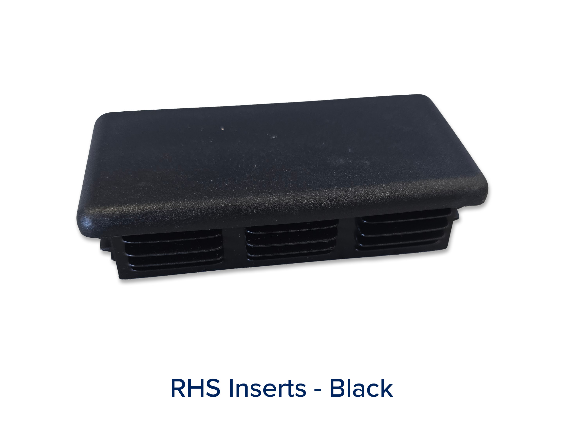 Black plastic inserts designed for rectangular hollow sections (RHS), providing a smooth and protective finish to open tube ends. Ideal for steel framing, furniture, and general fabrication to prevent moisture and debris entry while improving appearance and safety.