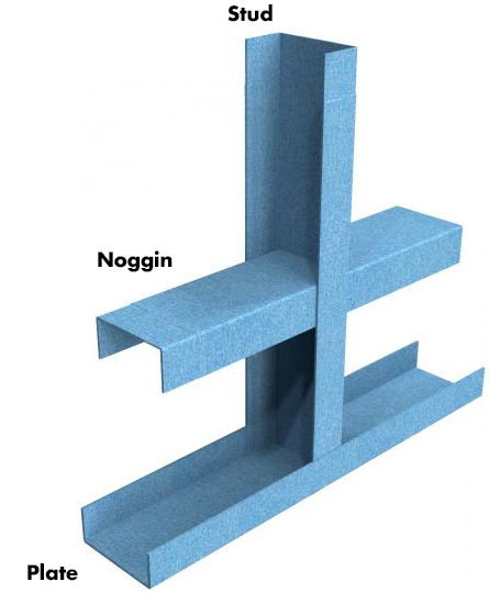 Studs, plates and noggings are used in steel wall framing systems to form wall structures, provide fixing points and maintain spacing between studs. Commonly used in residential and light commercial construction.