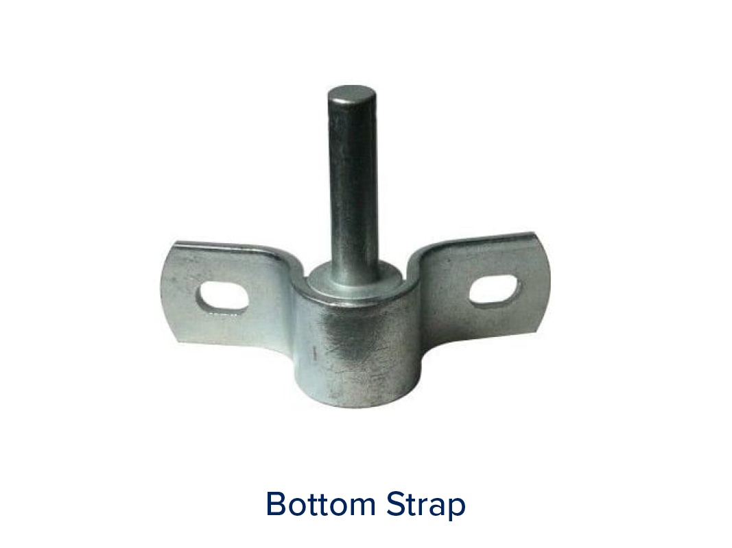 Top and bottom straps designed for hanging and supporting rural and farm gates. Suitable for use on steel posts where a strap-style mounting solution is required for gate alignment and stability.